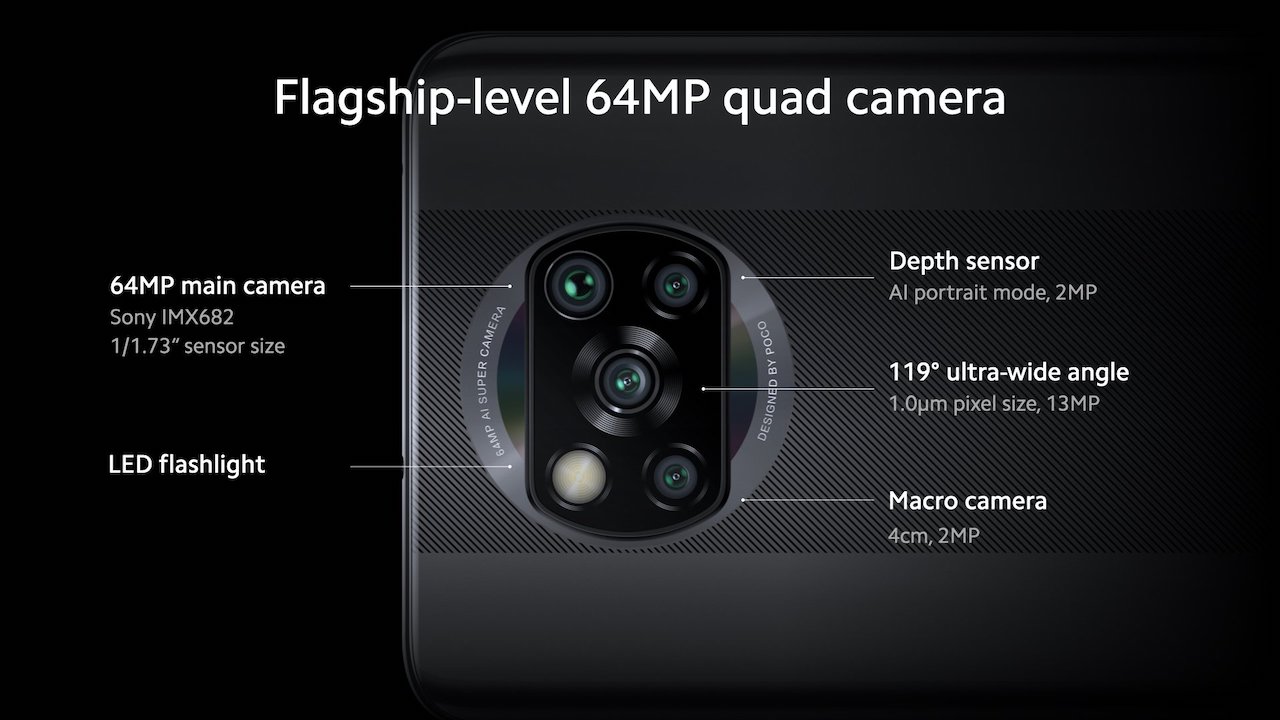 Y hablando de cámaras, este es el lado donde el Xiaomi POCO X3 NFC empieza a caer. El celular cuenta con lente principal de 64 megapíxeles, un lente ultra angular, un lente macro y un sensor para leer la profundidad. Asimismo, cuenta con una cámara frontal de 20 megapíxeles. A pesar de tanto equipo, la cámara no puede hacer ningún tipo de zoom óptico (cuenta con un zoom digital 2x) y puede grabar hasta 4K a 30 FPS (1080p con la frontal).