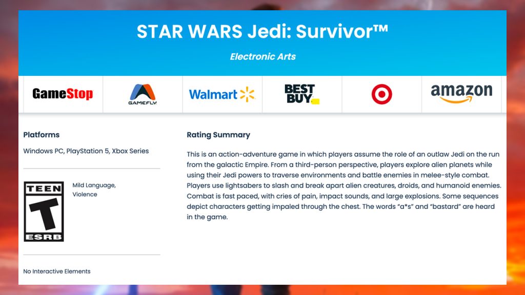 rating de star wars jedi: survivor de la esrb