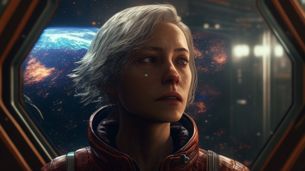 Arriba de estas líneas podemos apreciar la imagen original. Una imagen generada por Midjourney, una Inteligencia Artificial que trabaja en Discord bajo ciertos comandos provistos por el usuario de turno. Claramente el pedido fue hacer una imagen convincente tomando como referencia el arte de Starfield y ese fue el resultado. Debemos admitir que la imagen quedó muy bien, al punto de poder engañar hasta a los detallistas.