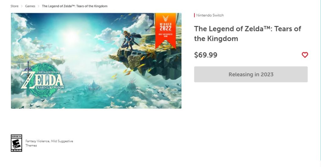 Durante la tarde de ayer la eShop de Nintendo Switch mostró brevemente que The Legend of Zelda: Tears of the Kingdom costaría $69.9. El precio se quitó rápidamente, pudiendo ser un simple error. No obstante, en el caso de ser cierto, sería el primer título de la compañía nipona en tener este precio.