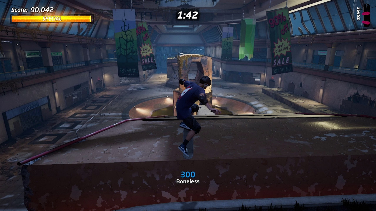 Esto no quiere decir que los niveles sean exactamente igual, pues Vicarious Visions les ha dado un trabajo de pies a cabeza para renovarlos por completo. Claro que me estoy refiriendo al apartado visual, aunque no solo son mejoras gráficas y ya. Cada escenario ha recibido cambios estéticos para darles una nueva identidad propia en el remake. Venecia se ha llenado con una cantidad masiva de grafiti que le trae nueva vida y un gran sentimiento de los 90’s. El mall ahora parece abandonado, casi apocalíptico, aunque sin zombis a la vista. El hangar se ha vuelto un tributo a Neversoft con posters del equipo y sus juegos por todos lados. Entre esto y más, a veces me olvido que no es una entrega nueva de Tony Hawk.