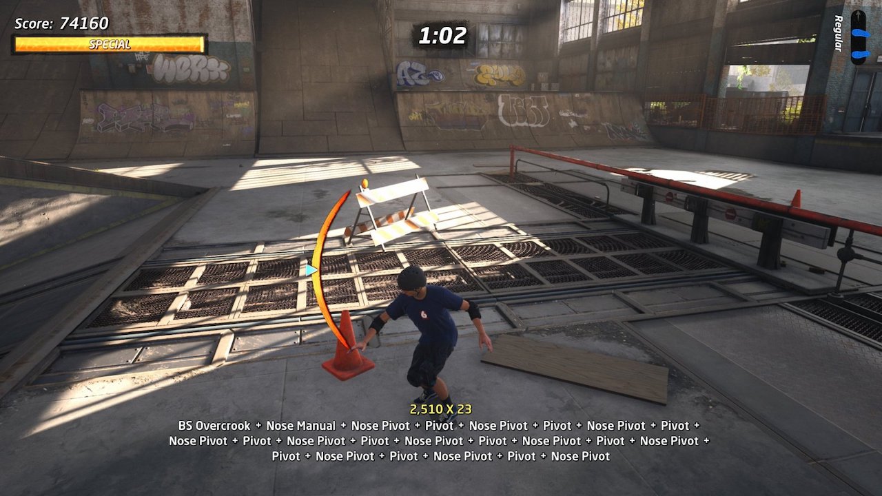 En ese podemos encontrar los Speed Runs. Tratan de completar todos los retos de cada nivel en el menor tiempo posible, luego mostrándote tu posición contra el resto del mundo. También existe el Single Session, cual te da 2 minutos para conseguir el mejor puntaje en cada nivel. Literalmente me he quedado pegado a ambos modos, tratando de mejorar mis calificaciones y siempre diciendo “un intento más”. Aunque esto me hizo notar aún más los tiempos de carga del juego. No son tan largos, pero sí lo suficiente para molestar después de recargar cada nivel por enésima vez. Eso sí, no falta su clásico modo Free Skate para solo pasearte con tiempo ilimitado y hacer lo que quieras.