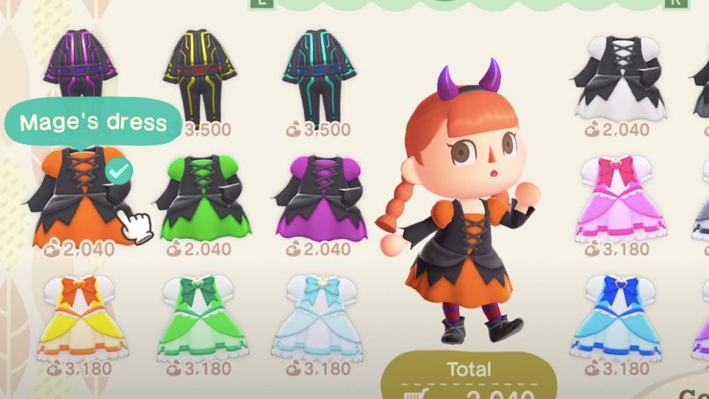 Listo, ya tiene los caramelos y tu pequeña isla ya está decorada. Ahora necesitas tu disfraz. Por suerte, la Able Sister’s Shop tiene una selección de atuendos con temática de Halloween para elegir. Finalmente, puedes conseguir pinturas corporales y lentes de contacto a cambio Millas Nook y de esta manera terminar tu vestimenta.