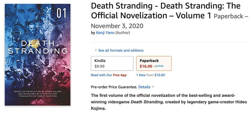 El libro que cuenta la primera parte de Death Stranding ya se encuentra disponible para ser preordenado en Amazon. La novela estará disponible en formato físico, al igual que en digital para Kindel.