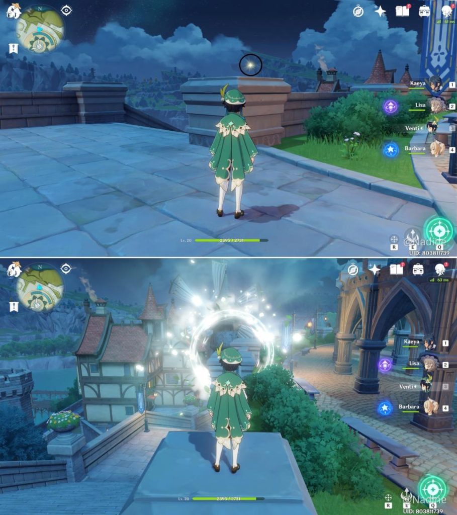 Sabrás que estás cerca del destello cuando se hayan activado los círculos que inician un minijuego. Este consiste en pasar por cada uno de los círculos sin caerse por los costados del pedestal. En caso te hayas tropezado, tendrás que iniciar nuevamente el minijuego desde el primer pedestal.
