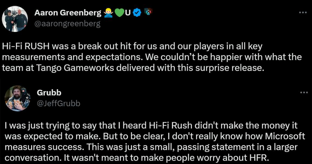 «Solo intentaba decir que había oído que Hi-Fi Rush no ganó el dinero que se esperaba. Pero para ser claros, no tengo idea de cómo Microsoft mide su éxito. Esta solo fue una pequeña declaración de una conversación más grande.»