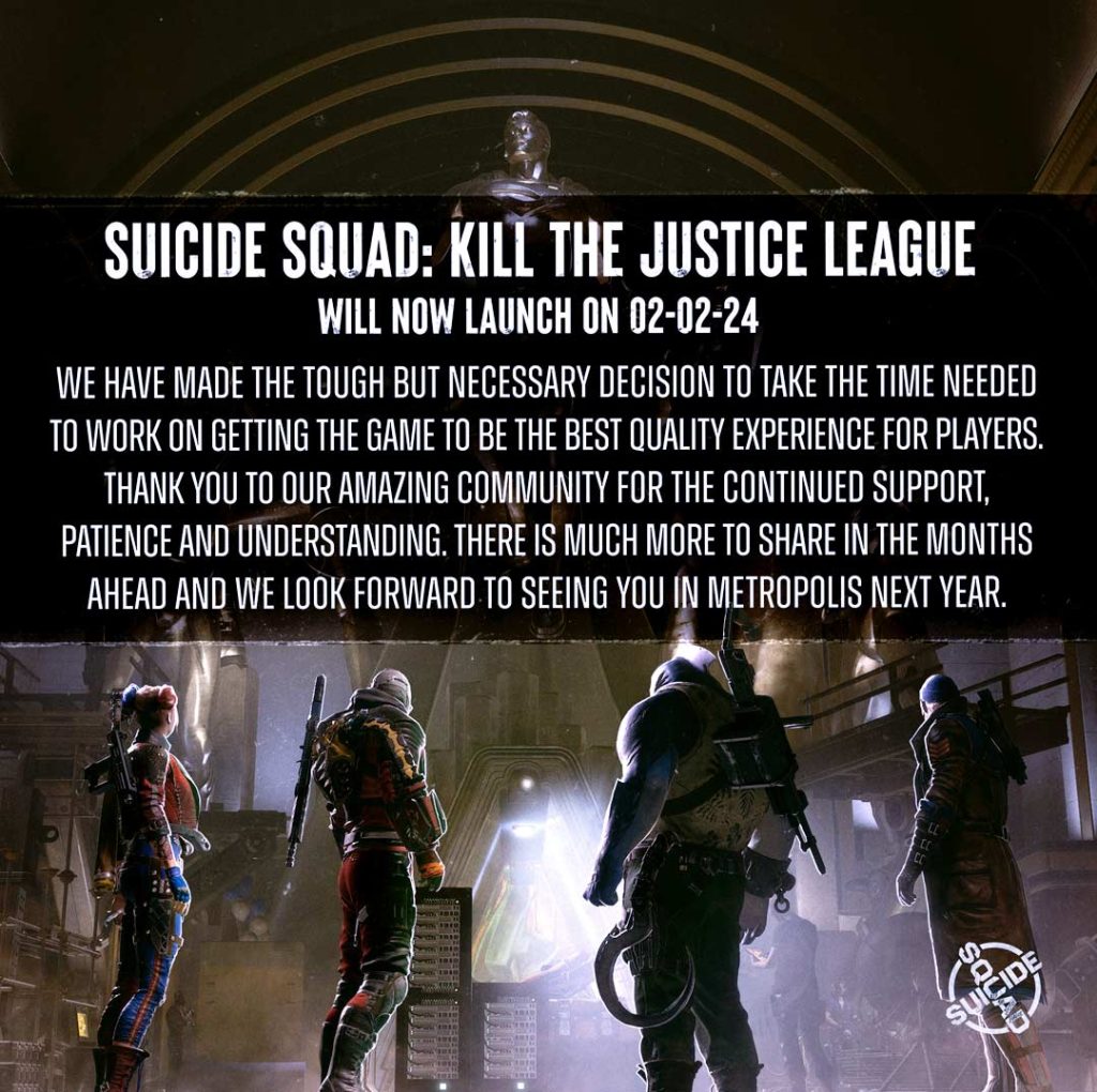 Es así que hoy, 13 de abril, el equipo de redes sociales de Rocksteady emitió un comunicado para sus seguidores. Este dejó en claro que Suicide Squad: Kill the Justice League no estaría listo sino hasta febrero del año 2024. Sobra decir que esto tomó por sopresa a todos los potenciales jugadores, puesto que este título era uno de los más esperados por los fans de estos anti-héroes.