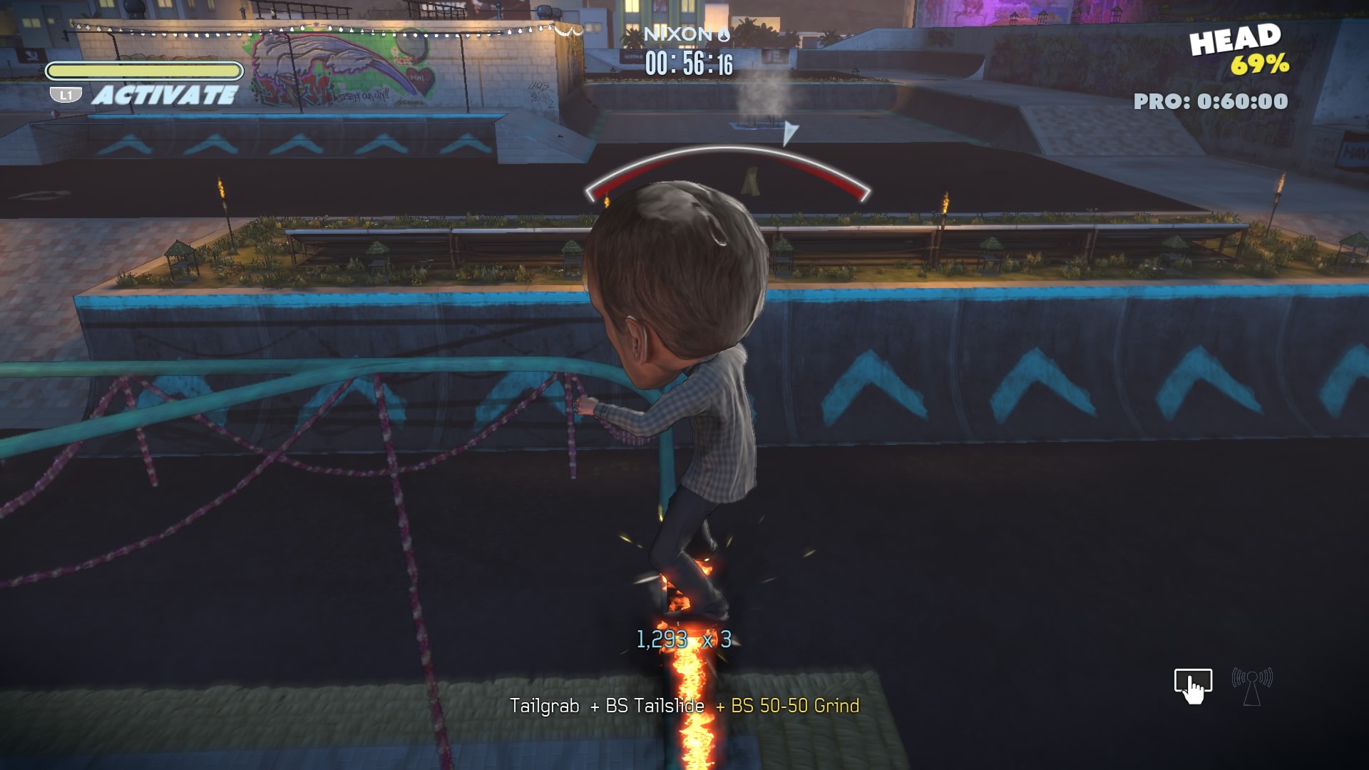 Hablando de la campaña principal, esta vez no hay nada de historia. Solo tenemos una lista de misiones que elegir donde deberás hacer cosas como conseguir puntajes altos, destruir ciertos objetos en tiempo record o hacer combos para que tu cabeza no explote, entre otros. Dependiendo de tu desempeño obtendrás 1, 2 o 3 estrellas. Estas son necesarias para conseguir nuevas pistas donde jugar, subir de nivel para conseguir mejores stats y obtener diferentes piezas de customización. Hablando de esto último, esta vez no podrás crear a tu jugador. Solo puedes elegir a uno de los varios skaters y modificar su apariencia por completo. Tampoco puedes elegir tus propios trucos. Cada skater viene con su propio arsenal inmodificable de trucos, limitando al jugador.